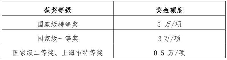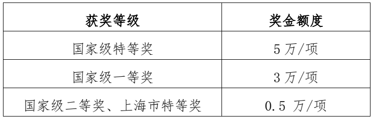 4.上海市赛特等奖及以上获奖项目团队将获得一定现金奖励,标准如下: