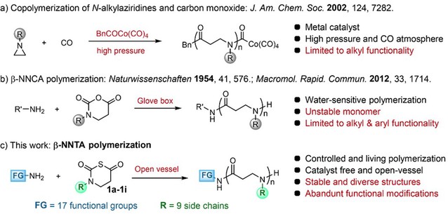 Recently, the research group of Professor Liu Runhui from the School of Materials, ECUST has made new achievements in the field of β -peptide synthesis. The related research article entitled“Controllable Polymerization of N-Substituted β-Alanine N-Thiocarboxyanhydrides for ConvenientSynthesis of Functional Poly(β-peptoid)s” was published in CCS Chemistry, the flagship journal of Chinese Chemical Society.